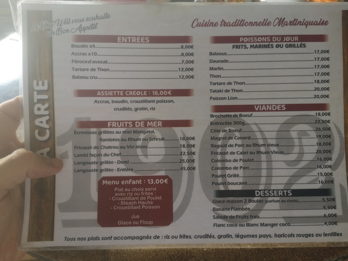 Finally, the Punch Coco Maison Aun Délice Bec la Pulpe de Crème de Coco stands out as a signature cocktail, capturing the essence of coconut in a smooth, delicious drink. For a snack or appetizer, the Accras de Morue Et Féroce d'avocats provides a perfect blend of cod fritters and a tangy avocado dip, making for an irresistible start to any meal.